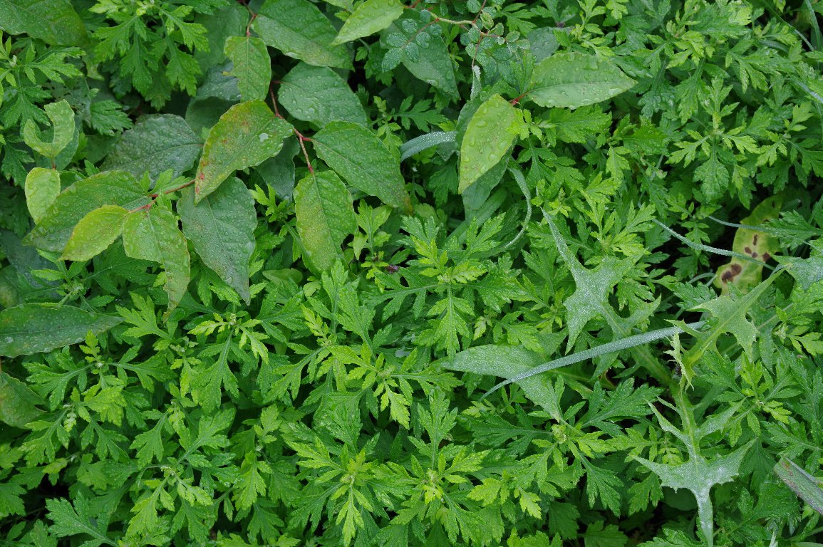 撮影雑記: こんかいは、ちょっと趣きを変えて、花ではなく、葉っぱたちに注目してみました。 何度、草刈りされても伸びてくる、道ばたの草たち。 その葉っぱの織りなす模様が、なかなかおもしろいのです。 ![]() いちめんのヨモギに、イタドリとアキノノゲシ?が顔を覗かせます。 ![]() 細かい葉はアキカラマツ、少し大きな葉はヤブガラシ。 アキカラマツには、黄色くなっている葉も。 ![]() アキカラマツがいちめん、ちょっと顔を覗かせる黄緑の葉はボタンヅルか。 シュッとしたススキの葉が、重なっています。 |