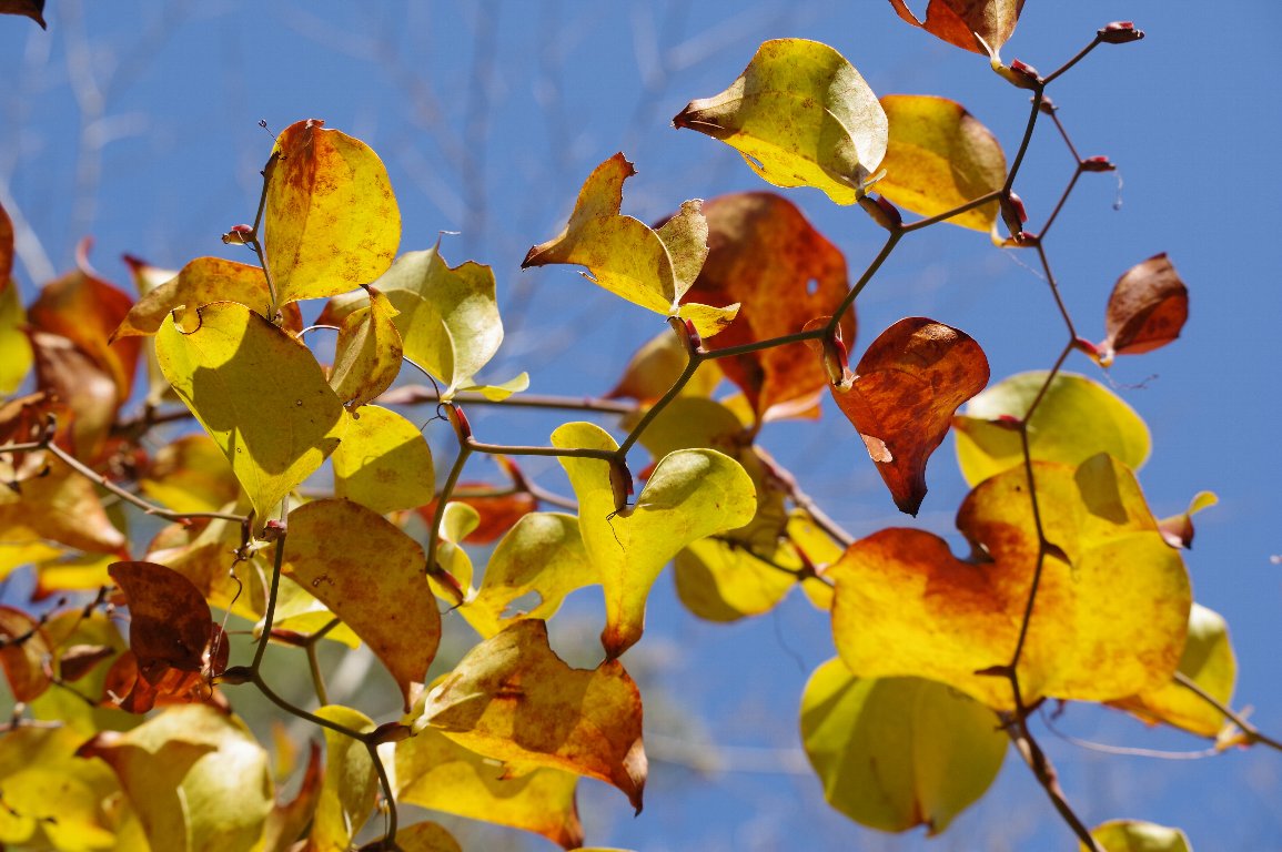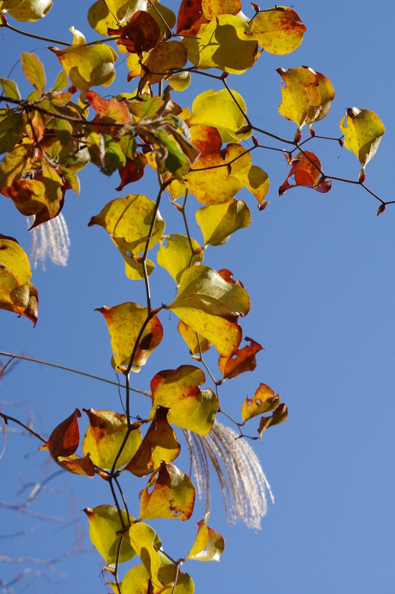 撮影雑記: サルトリイバラが、こんなにきれいに黄葉しているのは、初めて見たかもしれません。 つややかな緑の葉っぱや、真っ赤な丸い実の方を、どうしても、注目してしまいます。 黄葉は、あまり、意識していませんでした。 ![]() 青空バックに、下から見上げてみました。 サルトリイバラの茎や葉は、力強さを感じます。 ![]() 長く垂れ下がった蔓もありました。 きれいに黄葉していたサルトリイバラには、実が生っていませんでした。 実がなかったので、実の方に栄養が取られず、がきれいに黄葉した、なんてことはあるのかな? |