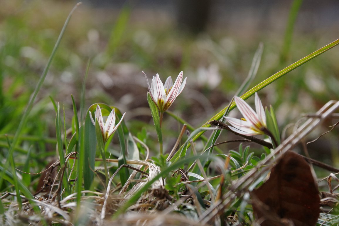 栗畑の傍らで、落葉や敷き藁に埋もれるように、アマナの花が咲いている。 なよっとして、風が吹くたびにゆらゆらと揺れる。 多少踏まれても、そのしなやかさで、しのいでいるのだろう。 |