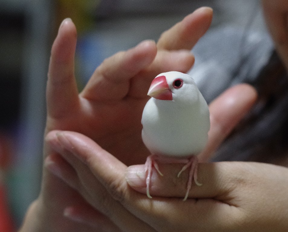 ペットショップでは、何羽もいっしょにかごの中にいて、背中をつつかれても、じっと耐えてる子でした。