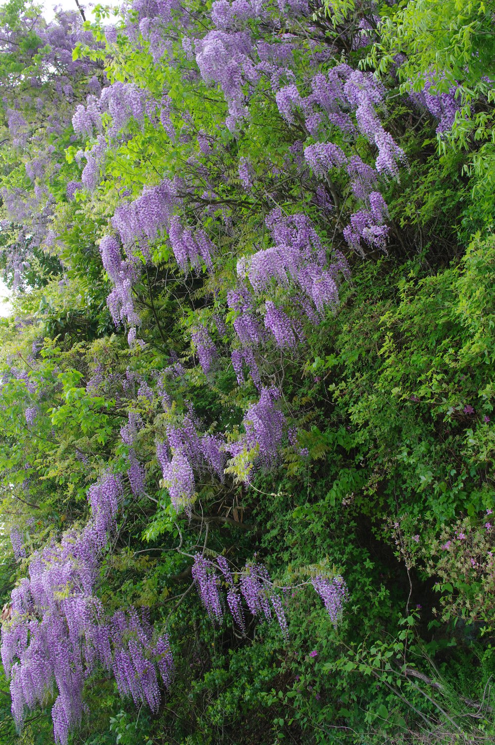 新緑の木々を被いつくして、咲く。 |