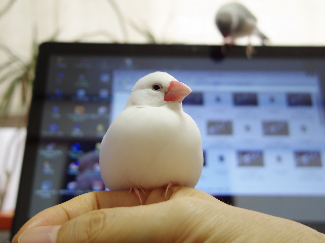 撮影雑感: 第16回目の豊楽会作品展は、テーマ作品1作品と、自由作品2作品を出展することになりました。 今回のテーマは「手」。 いろいろ、自分の手を、多重露出したり、トリッキーに撮ってもみましたが、今一つ。 何かないかと探しているうちに、我が家の文鳥が手に乗って、くつろいでいる写真が出てきました。 うん、かわいい、これにしよう! いちおう、手も写ってるし。 ちなみに、手の上の白文鳥は、メスのじゃこ(7歳)。 後でPCのふちに乗っているシルバー文鳥は、オスのちゅたろう(4歳)。 |