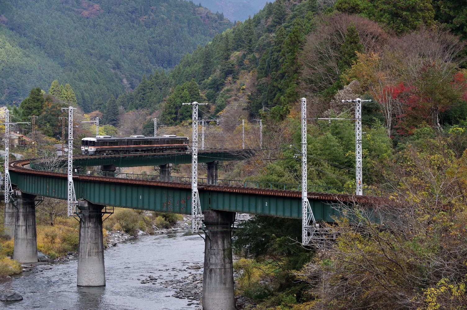 私の出身地のローカル線、飯田線に、川を渡らずに戻ってくるという、ちょっと変わった鉄橋があります。 中央構造線の脆い地質のためトンネルを掘ることができず、やむなく、鉄橋でぐるっと迂回することに したそうです。 地元では有名な、撮影スポット。やっと、撮りに行くことができました。 |