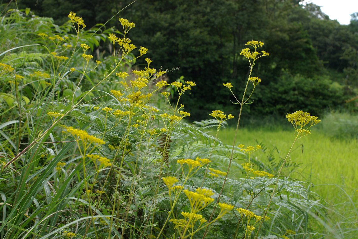 まだまだ暑いですが、山には、秋の七草が、もう咲いています。 山間の棚田に咲きそろうオミナエシの黄色い花を見ると、秋の気配を感じます。 |
