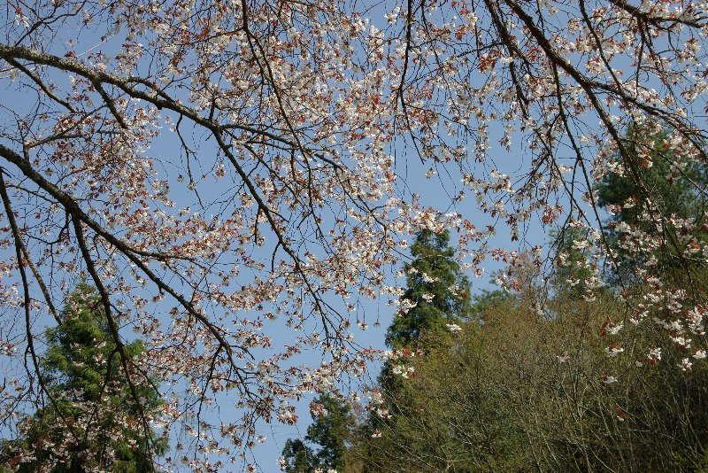 花咲く枝の向こうがわに、木々が見え、青空が見えた。