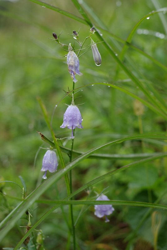 足元をぬらしながら取り付いた土手には、咲き始めたツリガネニンジン。