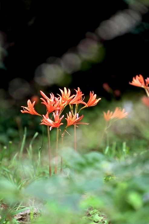 お盆のころ、独特のオレンジ色の花を咲かせるキツネノカミソリ。
