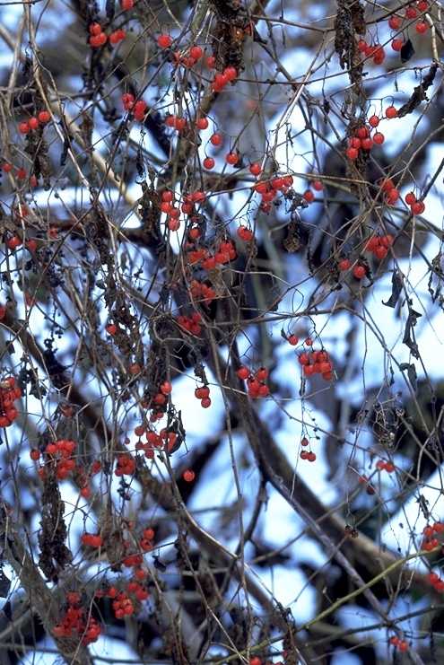このヒヨドリジョウゴの実も、雪がなければ、藪の中に紛れていただろう。
